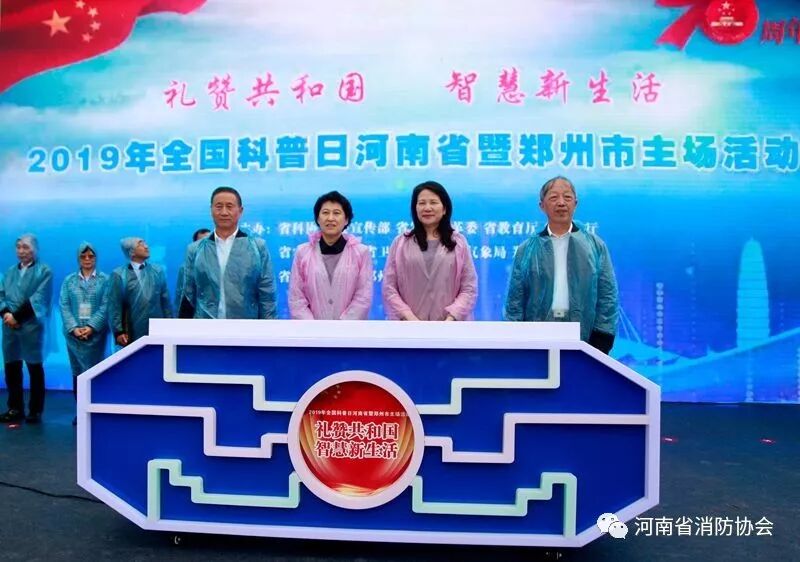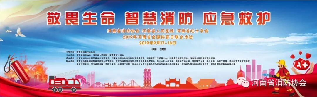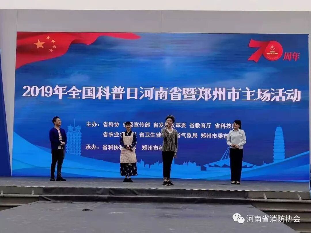 2019年9月17-18日,河南省科学技术协会联合河南省委宣传部、河南省发展改革委、河南省教育厅、河南省科技厅、河南省农业农村厅、河南省卫生健康委、河南省气象局、郑州市委市政府共同主办的2019年全国科普日河南省暨郑州市主场活动在郑东新区如意湖文化广场举行,河南省消防协会、河南省人民医院、河南省红十字会联合组织了其中的消防和救护科普活动。河南省委副书记、政法委书记喻红秋,河南省政府副省长霍金花,河南省政协副主席钱国玉,河南省人大常委会原副主任、河南省老科协会长蒋笃运出席,河南省科协党组书记、主席曹奎主持启动仪式。